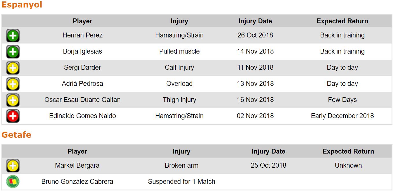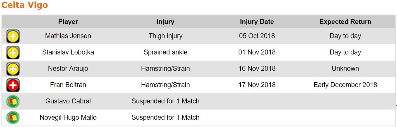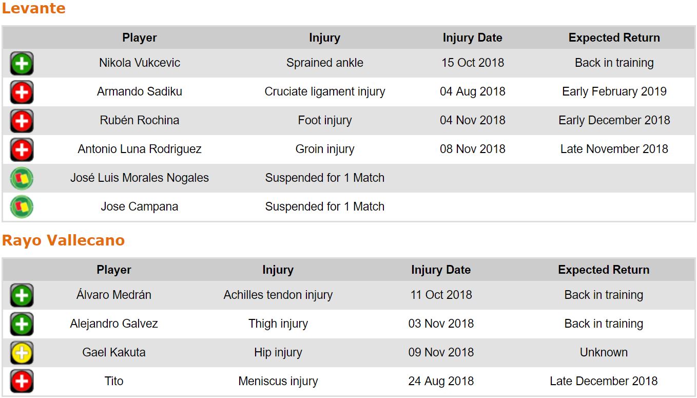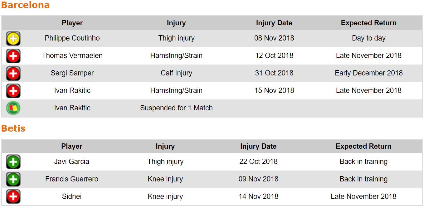 프리메라리가 13라운드 각 팀 부상자 및 결장 예정 선수