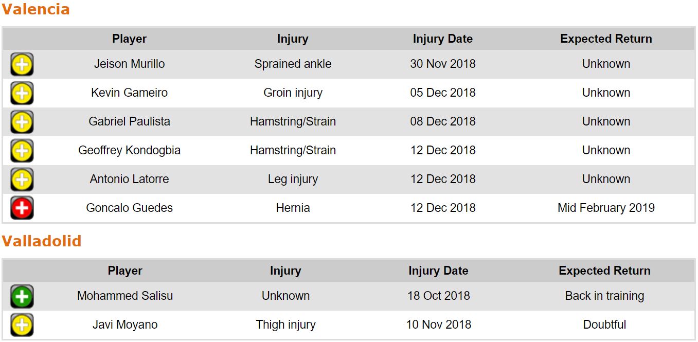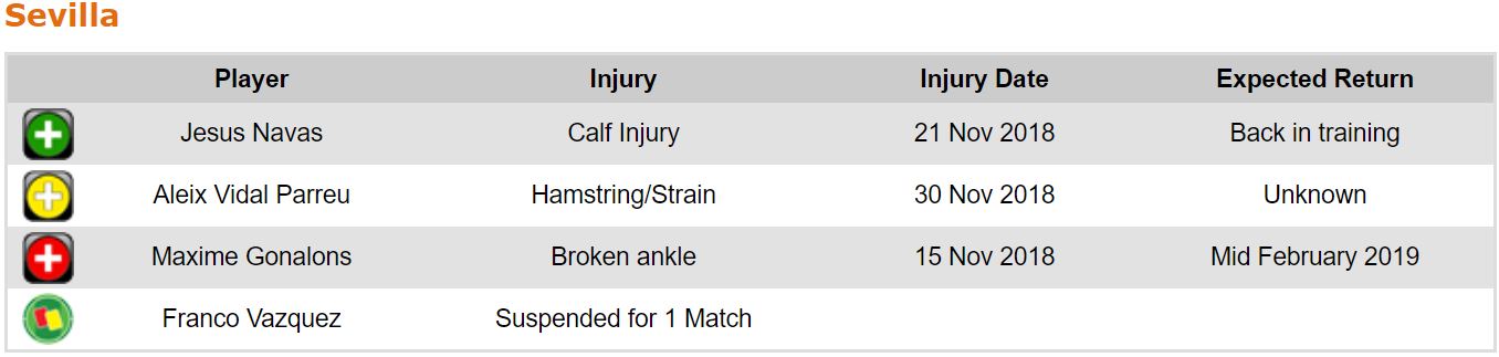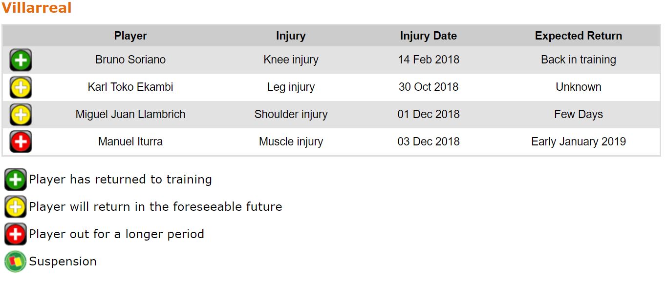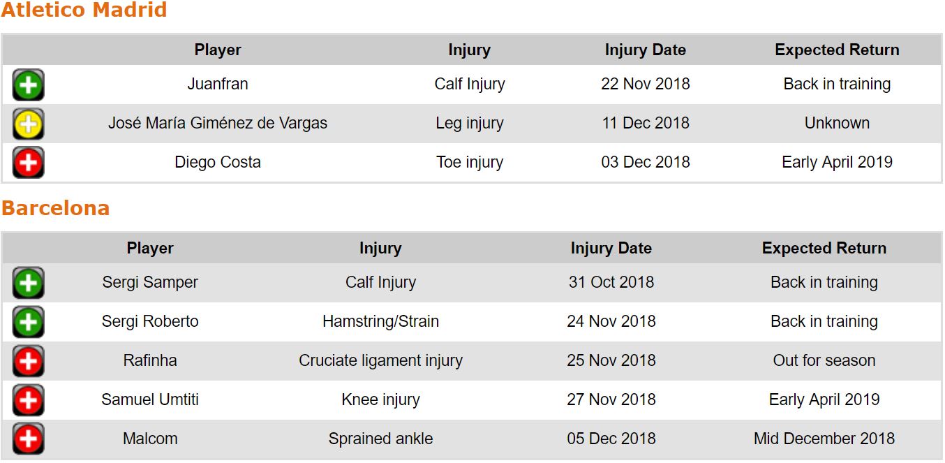 프리메라리가 16라운드 각 팀 부상자 및 결장 예정 선수