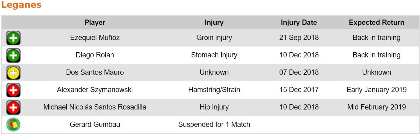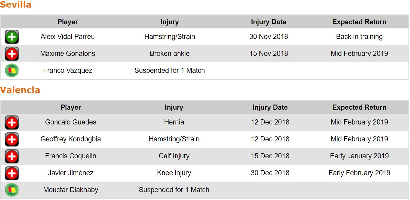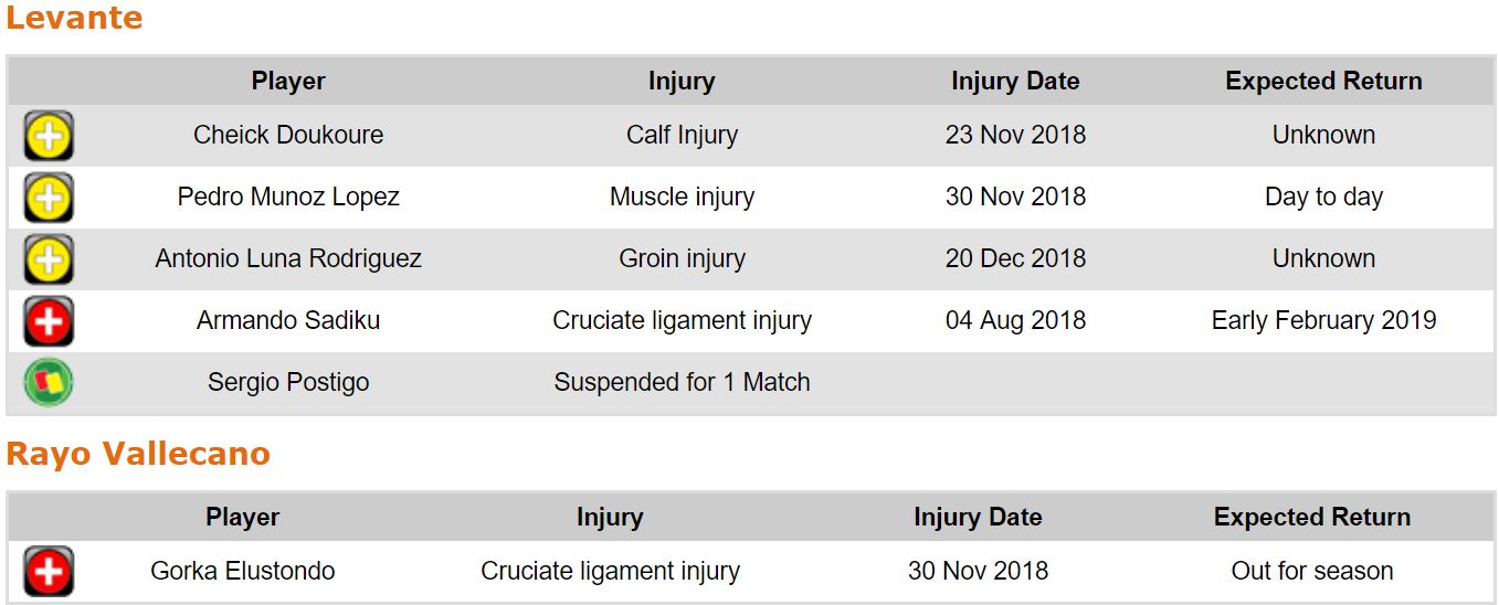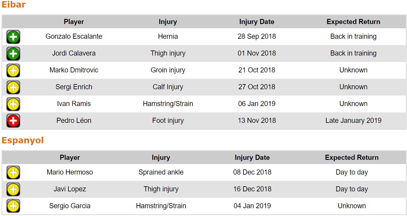 프리메라리가 19라운드 각 팀 부상자 및 결장 예정 선수