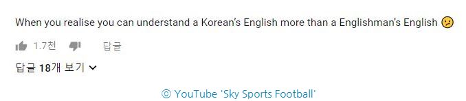 한 유튜브 이용자는 "당신이 영국인 영어보다 한국인 영어를 더 잘 이해하는 걸 깨달을 때"라는 댓글을 남겼다. 이 댓글은 좋아요 1400회 이상을 기록하며 공감을 얻고 있다.