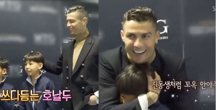 이를 다정한 표정으로 바라보던 호날두는 친동생처럼 아이들을 꼬옥 안아주었다.