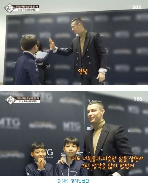 이에 태훈 군은 "호날두 형이 어렸을 때 축구를 어렵게 했다고 했는데 그 얘기를 들어서 힘을 얻었다"고 진심을 전했다.
