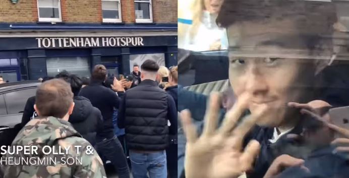 차를 둘러싼 팬들은 이윽고 손흥민 선수 응원가인 "나이스 원 쏘니(Nice one Sonny)"를 다 함께 불렀다.