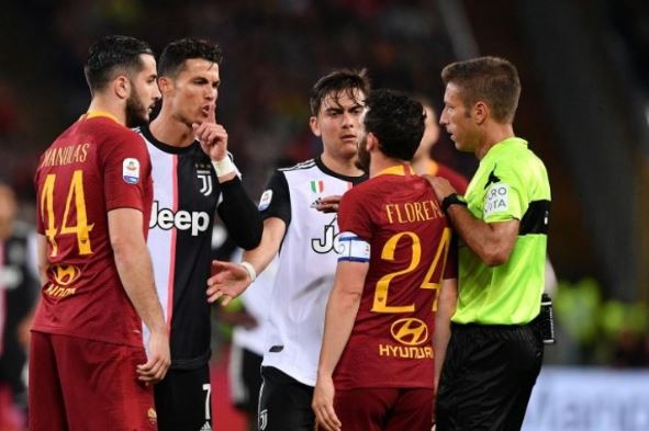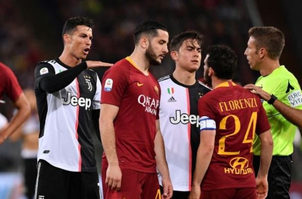 유벤투스와 AS로마의 경기 중 호날두와 플로렌치가 붙었습니다.
