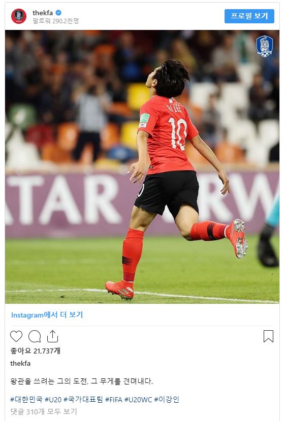 이강인 선수가 이끄는 U-20 대표팀은 오는 12일 에콰도르와 4강전을 치른다. [사진] 대한축구협회, 이강인 SNS