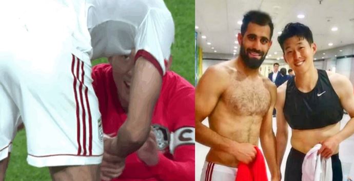 전반전 경기가 끝나고 하프타임이 시작될 때 호세인 카나니는 그라운드에 앉아 숨을 고르고 있는 손흥민에게 다가가 그의 손을 잡고 무어라 말을 건네 시선을 사로잡았다.