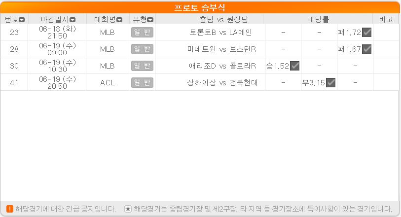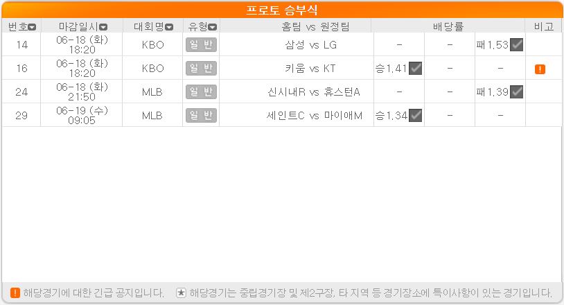 1) MLB 조합에서 안정적인 수익을 노릴 수 있는 경기가 많지 않다. KBO(화) 경기를 적극 노려보는 것도 좋다.