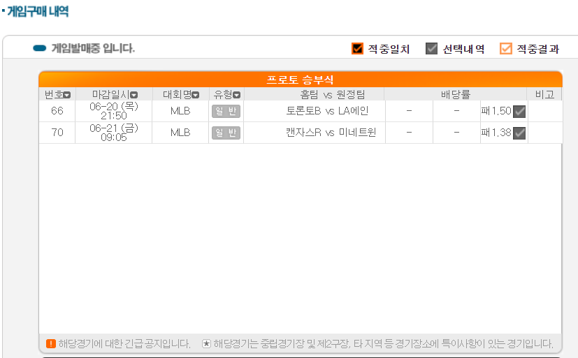 Tip. 배팅축으로 예상되는 경기의 조합으로 안정적인 수익을 기대. 만약 위험 부담을 감수 할 수 있다면 68번 경기를 추가하는 것도 고려해 볼 만 하다.