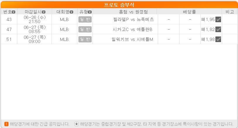 1) 이번 주중 MLB의 경우 원정팀이 정배당을 받은 경우가 많다. 이는 곧 적중률 하락을 야기 시키는 요소. 주의가 필요하다.