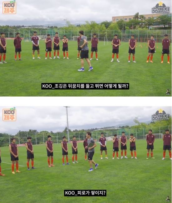 지난 28일 '슛별친' 유튜브에 올라온 영상에서 구자철 선수는 제주 U18 선수들을 만나기 위해 훈련장을 방문했다.