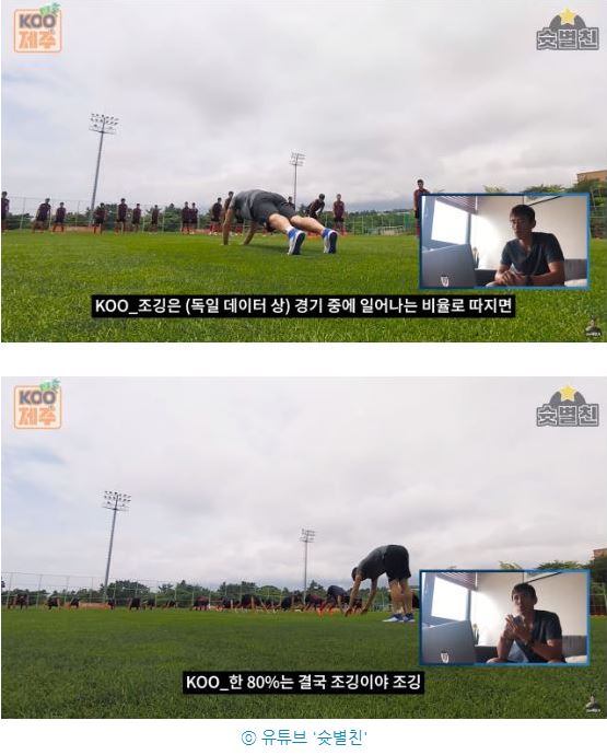 구 선수는 경기 중 80% 정도는 결국 조깅이라며 조깅할 때 체력을 비축하고 좋은 습관을 들여야 스프린트나 고강도 조깅을 할 때 폭발적인 힘을 사용할 수 있다고 알렸다.