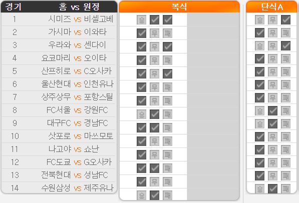 중복 체크 여부: 무승부 주력/ 서울 승 부주력. 우선 순위가 매우 높은 편.