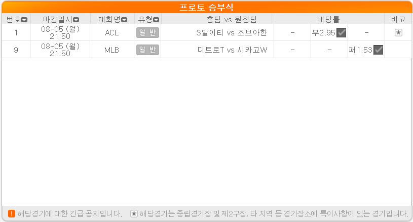 Tip. 화요일 조합 중 그나마 가장 무난한 조합. 만약 위험 부담을 감수 할 수 있다면 2번 경기를 추가하는 것도 검토해 볼 만하다.