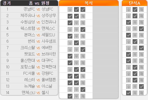 중복 체크 여부: 홈 팀 승 주력, 무승부 부주력. 1~5순위 안에 들기엔 조금 부족한 경기