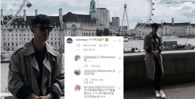 손흥민 선수가 런던에서 찍은 자신의 모습을 공개하자 김태환 선수가 "누가 찍었을까"라는 댓글을 달아 네티즌들이 설전을 벌였다.