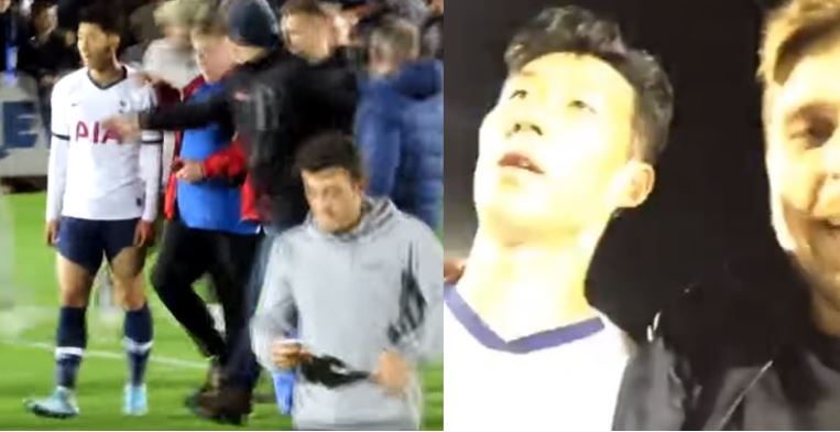 '이건 Gun Lee의발품스토리 TV' 유튜브 채널이 공개한 영상에 따르면 일부 콜체스터 팬들이 경기장에 난입해 손흥민 선수 옷깃을 잡거나 셀카 요청을 했다.