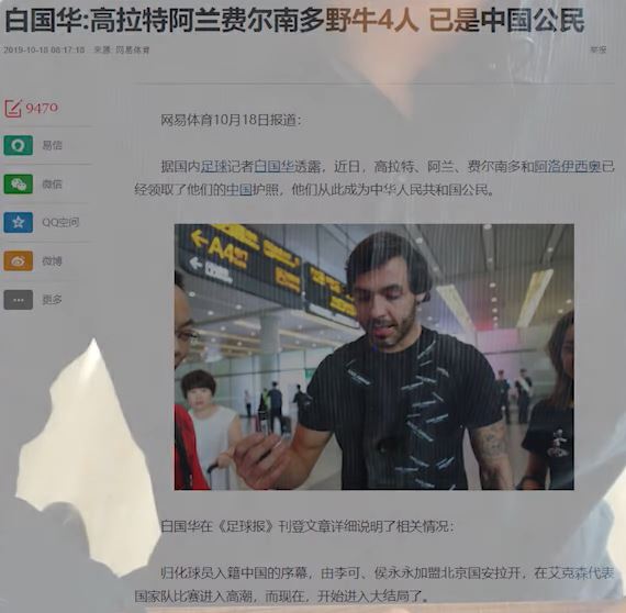 중국 축구, 브라질 선수 4명 추가 귀화 완료
