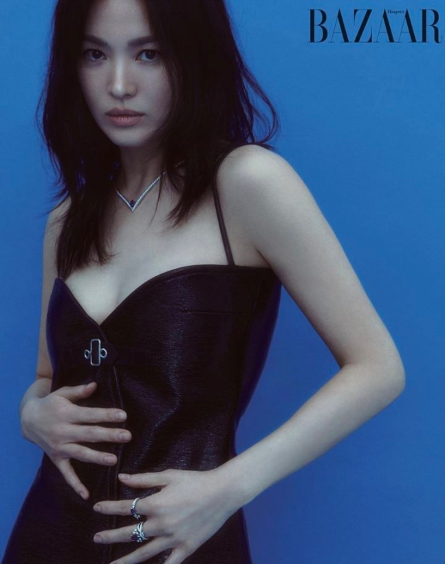 송혜교는 지난 22일, 자신의 소셜미디어 계정에 별다른 설명 없이 패션 전문지 '하퍼스 바자' 코리아 화보 사진을 다수 공개했다.